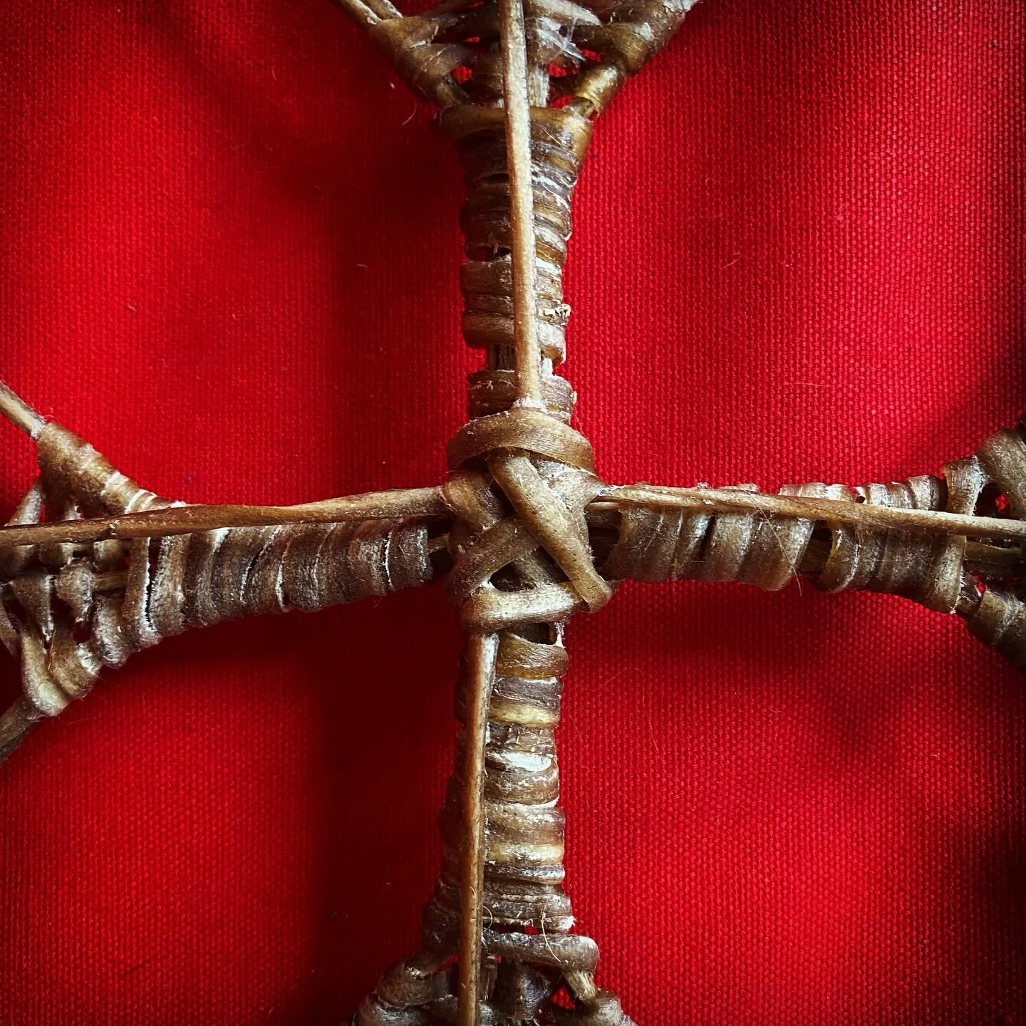The way I lace my drums in the back came through an organic unfolding whereby the significance of every detail was taken into account, working with the four directions, the elements, and the unseen beings that continually teach and guide me. It simulates the circle of life and the guiding medicine wheel. Between the four directions, the sacred geometry becomes an activation that creates a bridge between Spirit and matter. The 16 spokes reduces to seven (1+6=7), the sacred number that connects us to Spirit.