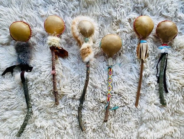 Rattles are the sound of the North in the medicine wheel. Their sound assimilate the rain therefore a good cleanser of dense energies stuck in body, mind or spaces. They are also used for traveling into other realms, journeying to the North where our ancestors, teachers and guides live.