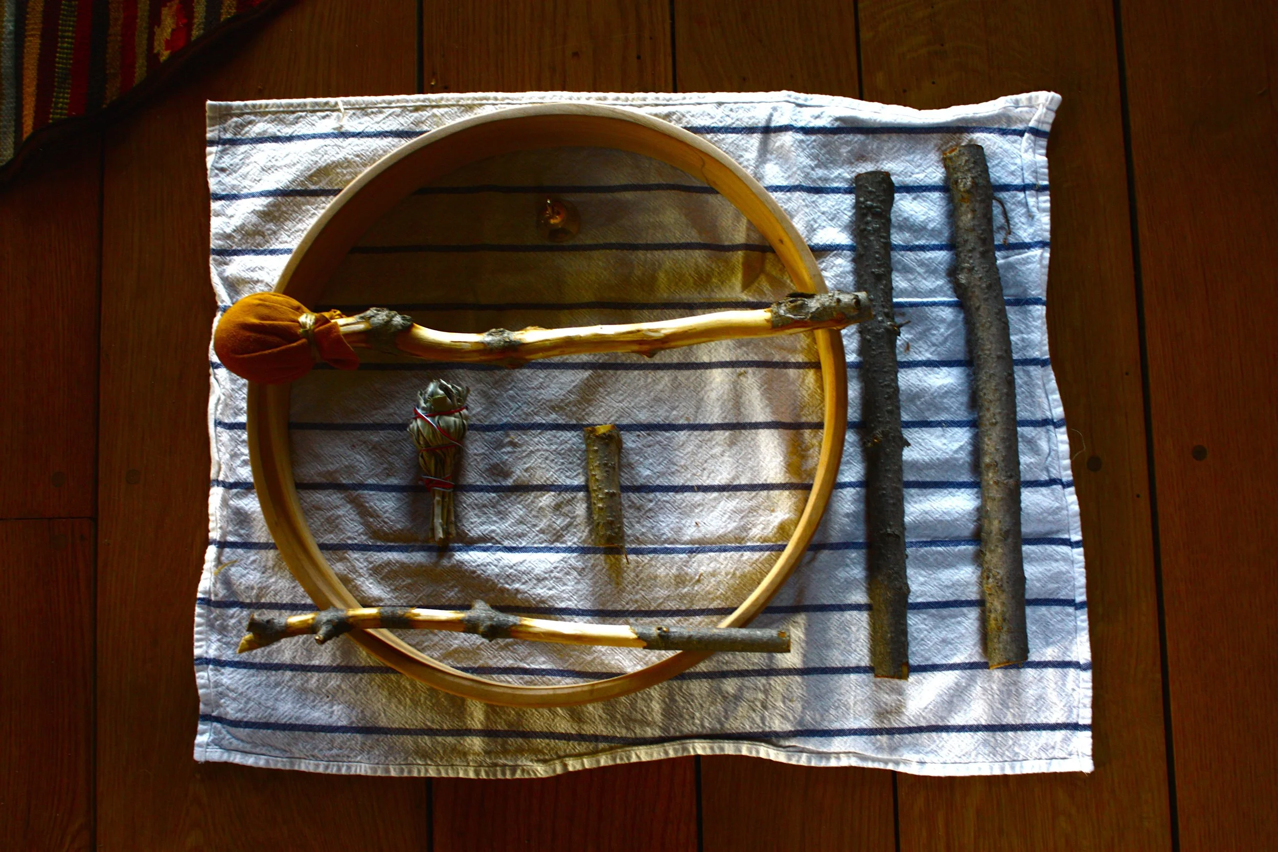 The drum making process is a birth of the Self, an opportunity to bear witness to the unravelling and re-weaving of your heart-song and spirit path.